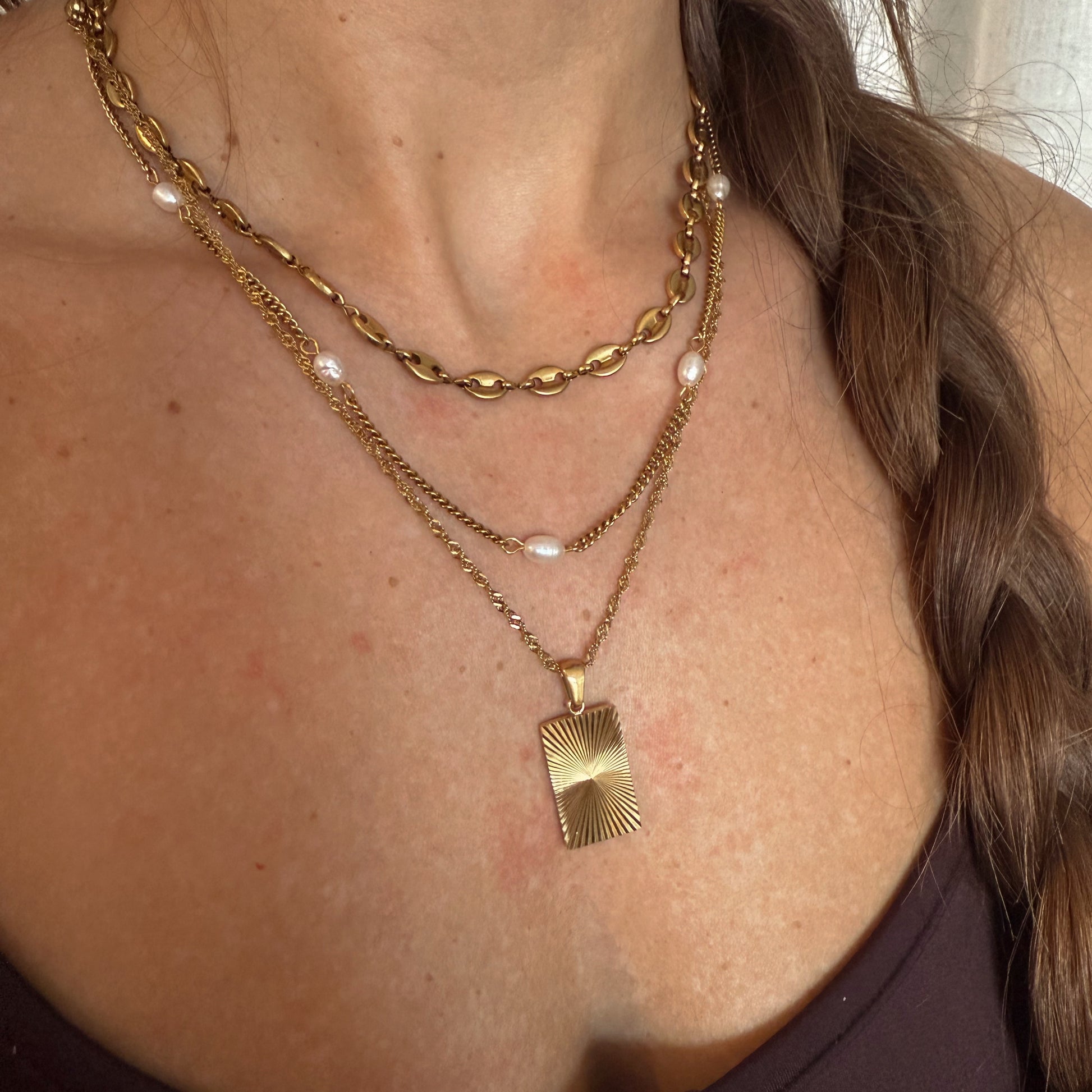 - Includes 3 necklaces: Lana Stacker, Harper Pearls, and Golden Ray Pendant