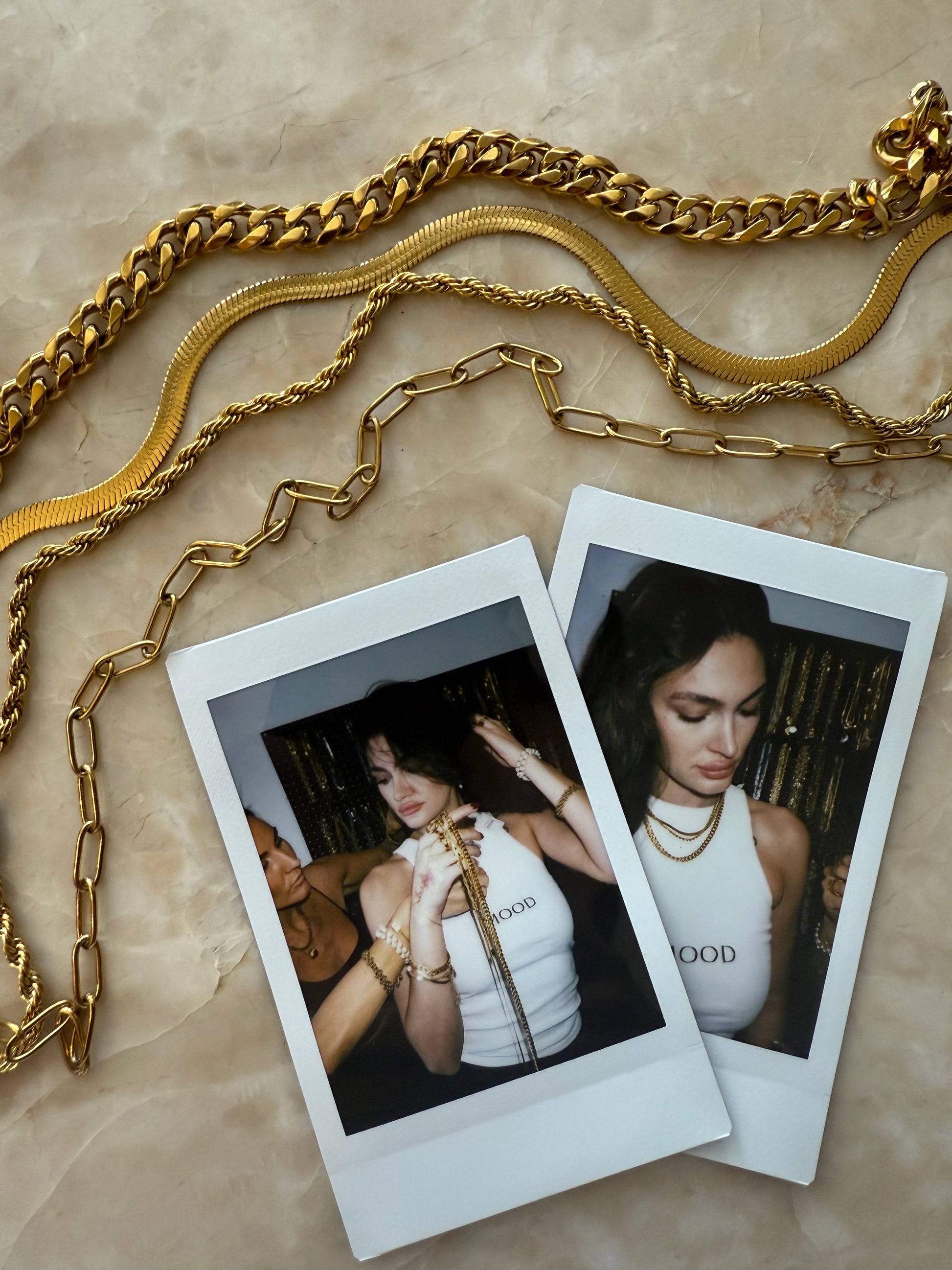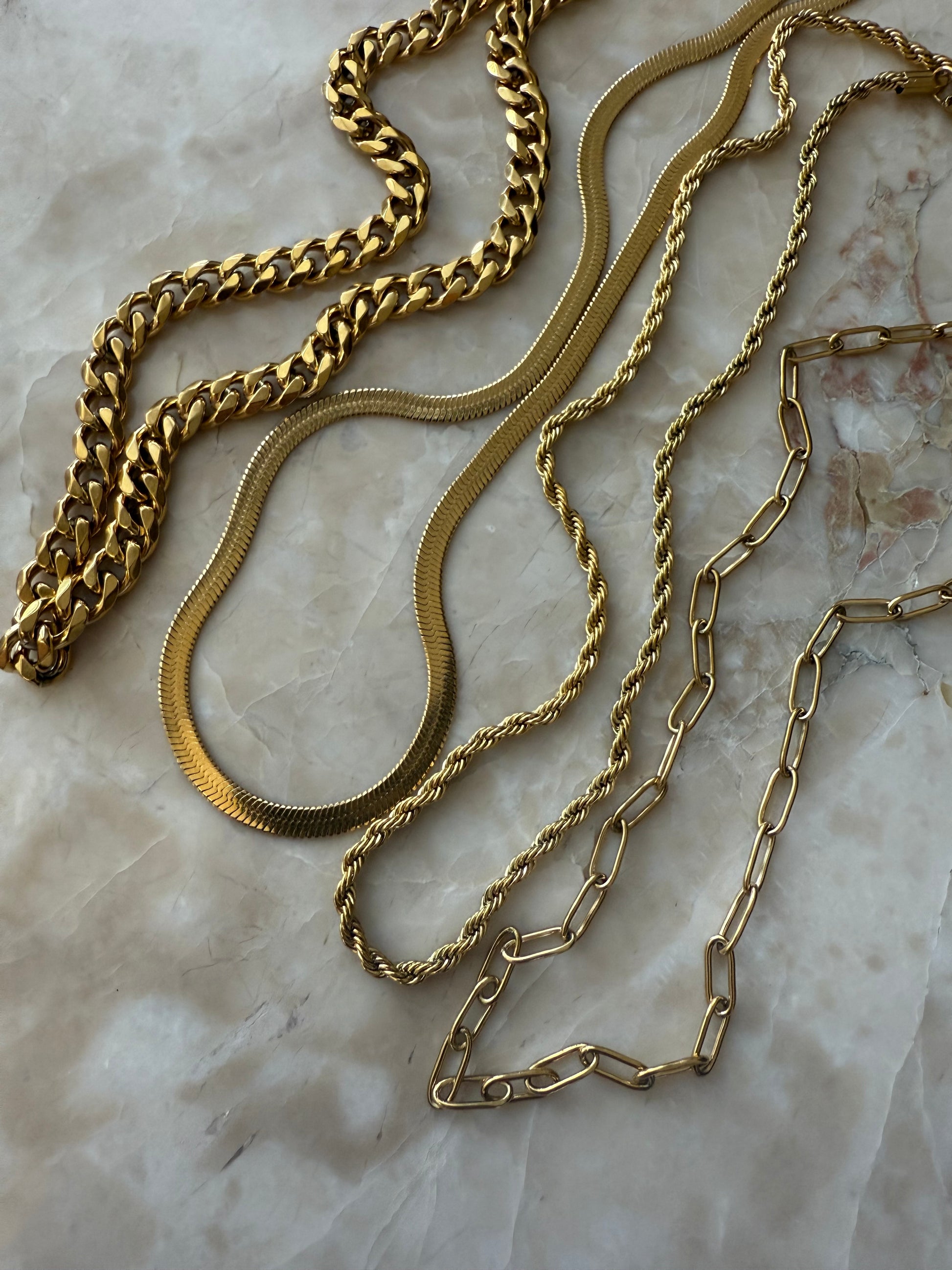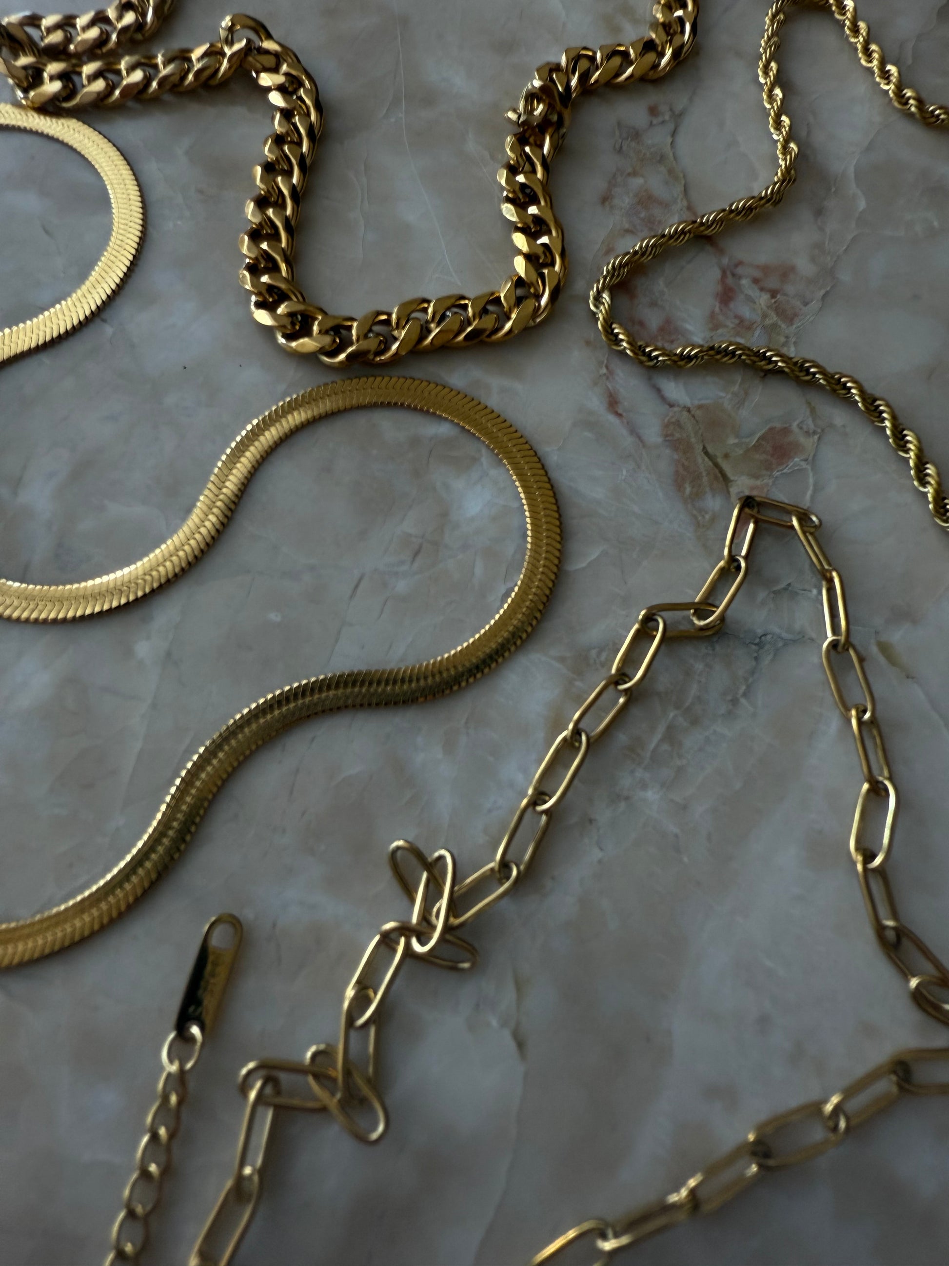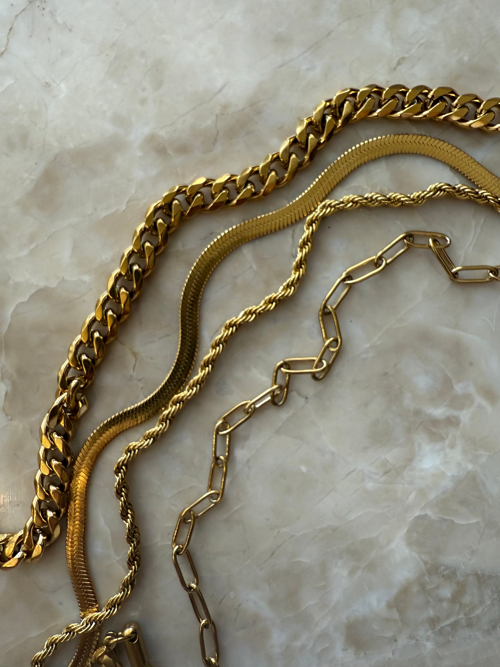 - 4 bestselling gold chains (mix of lengths + textures)