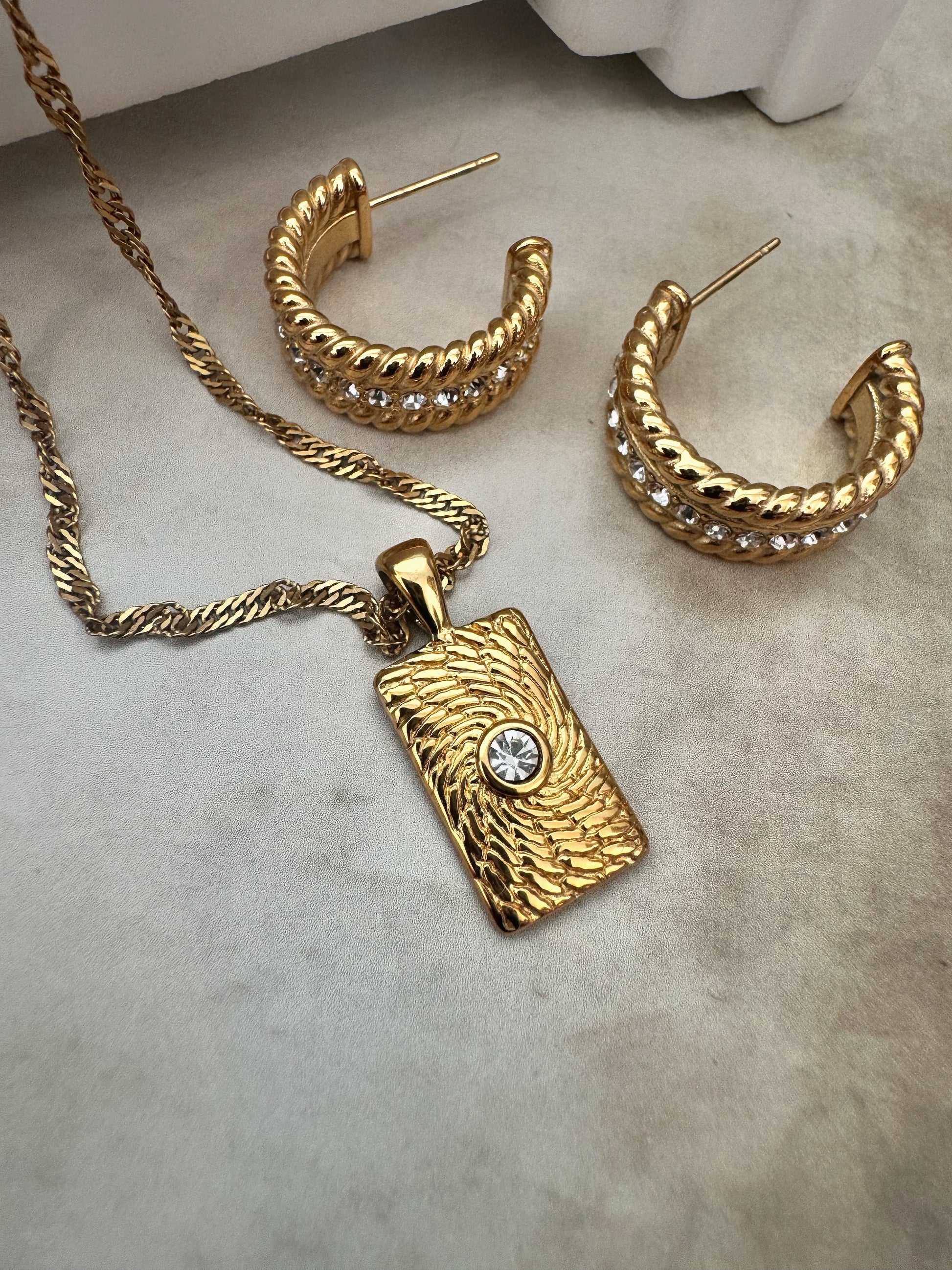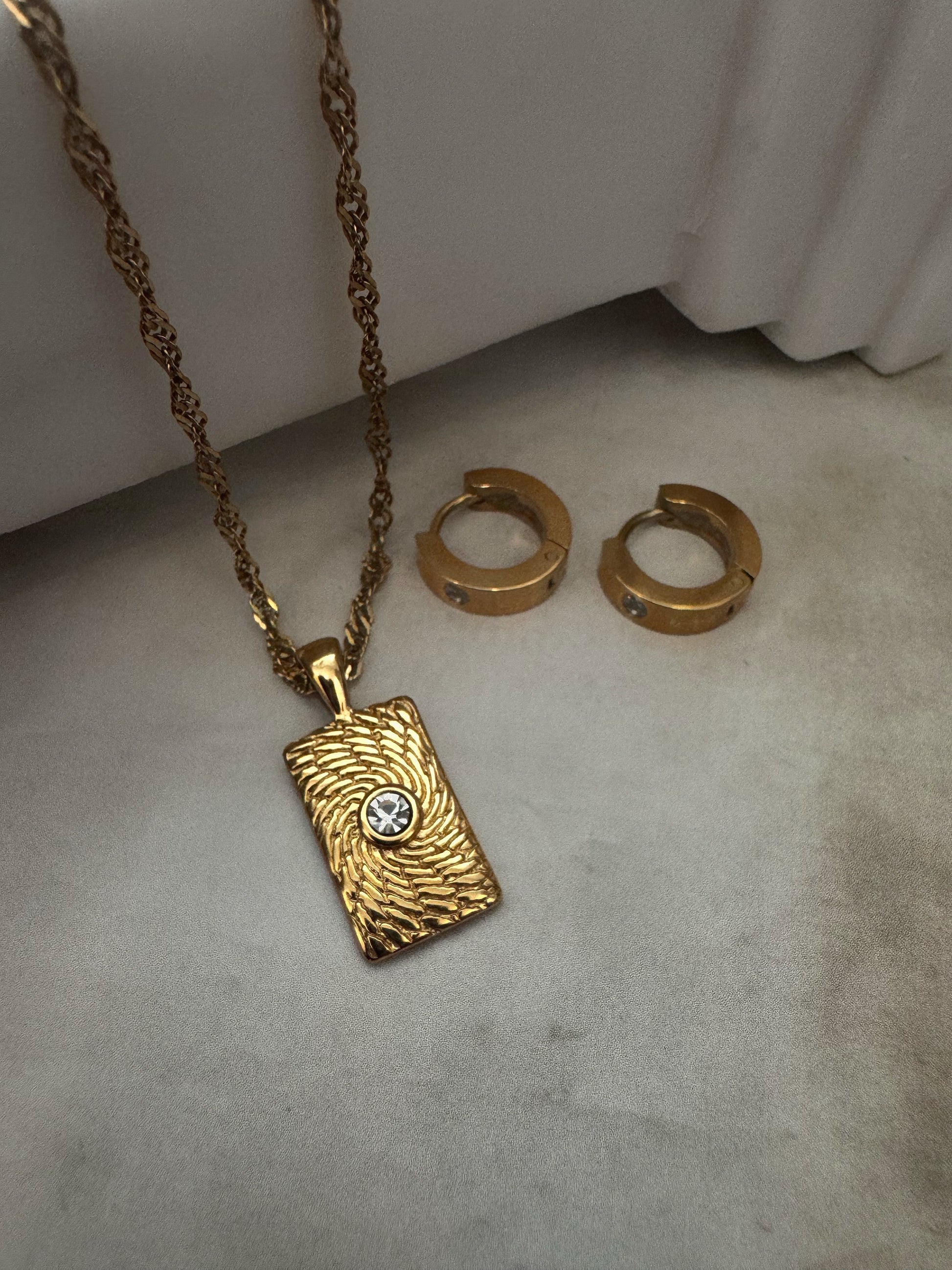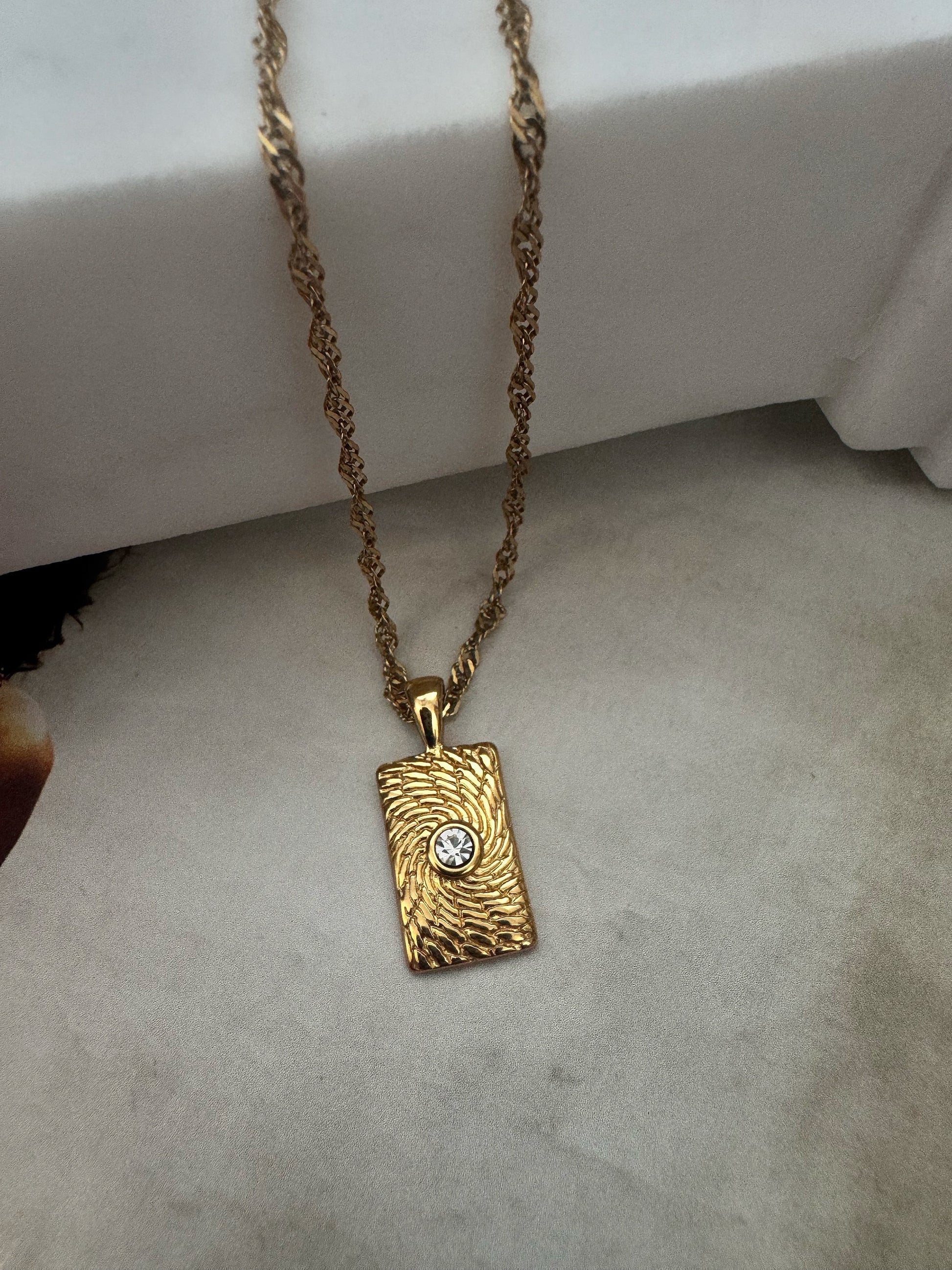 - Pendant paired with textured gold chain