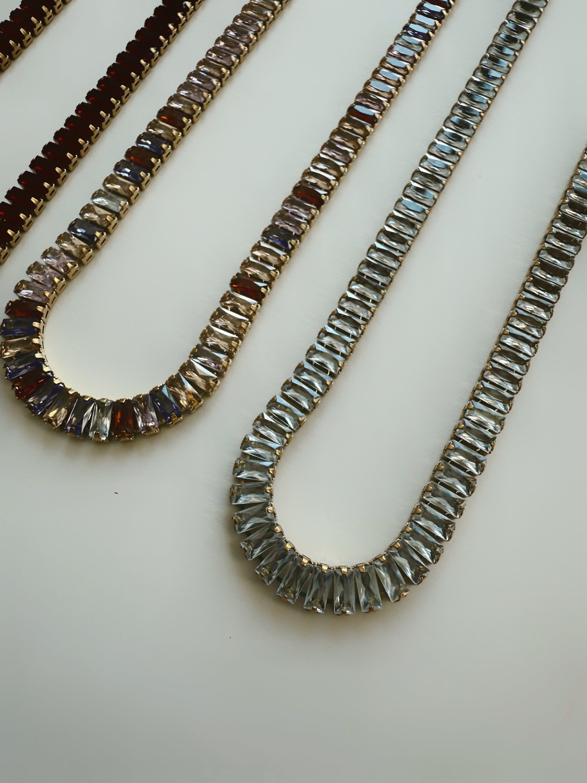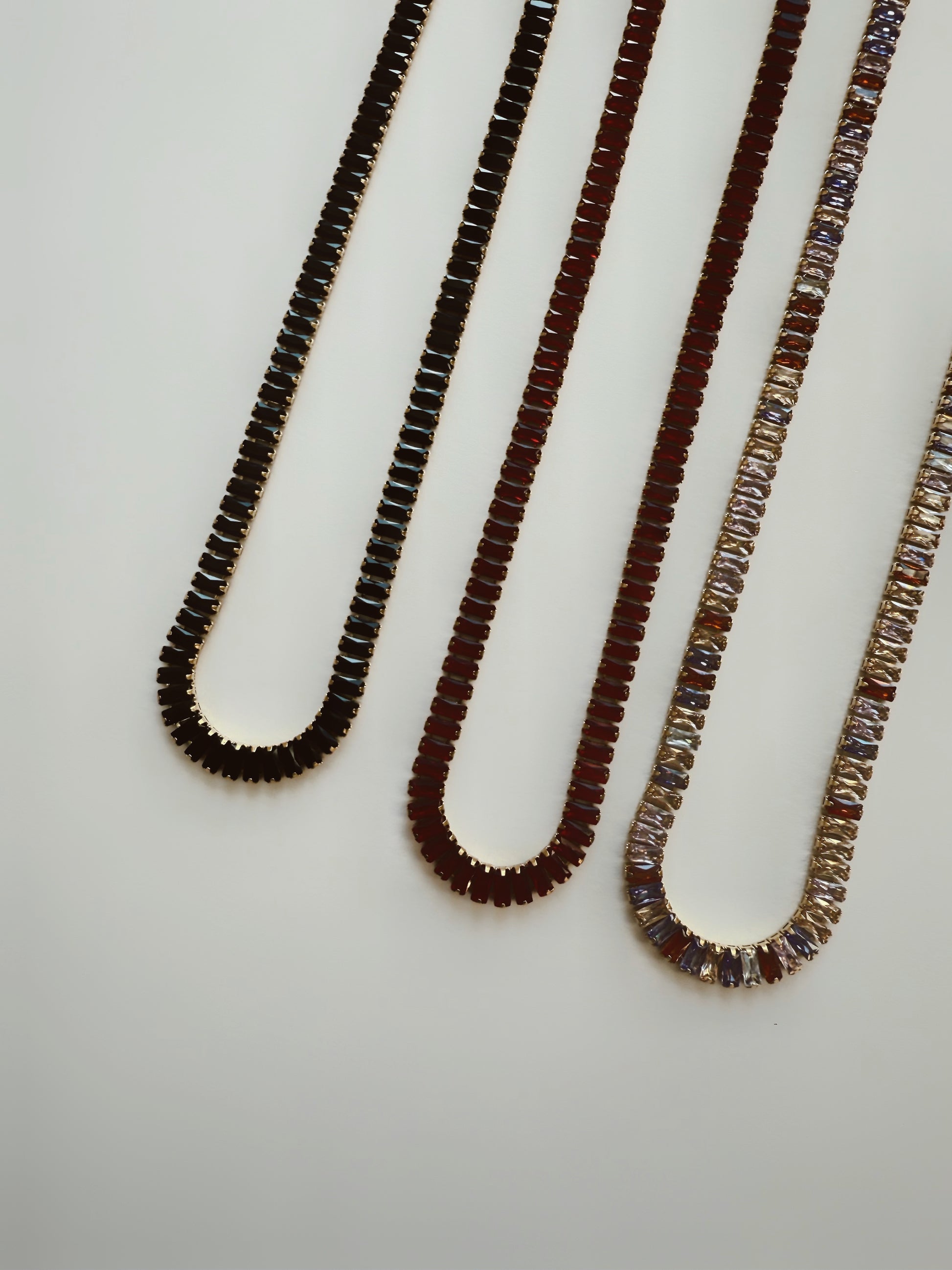 - High-shine baguette crystal tennis design