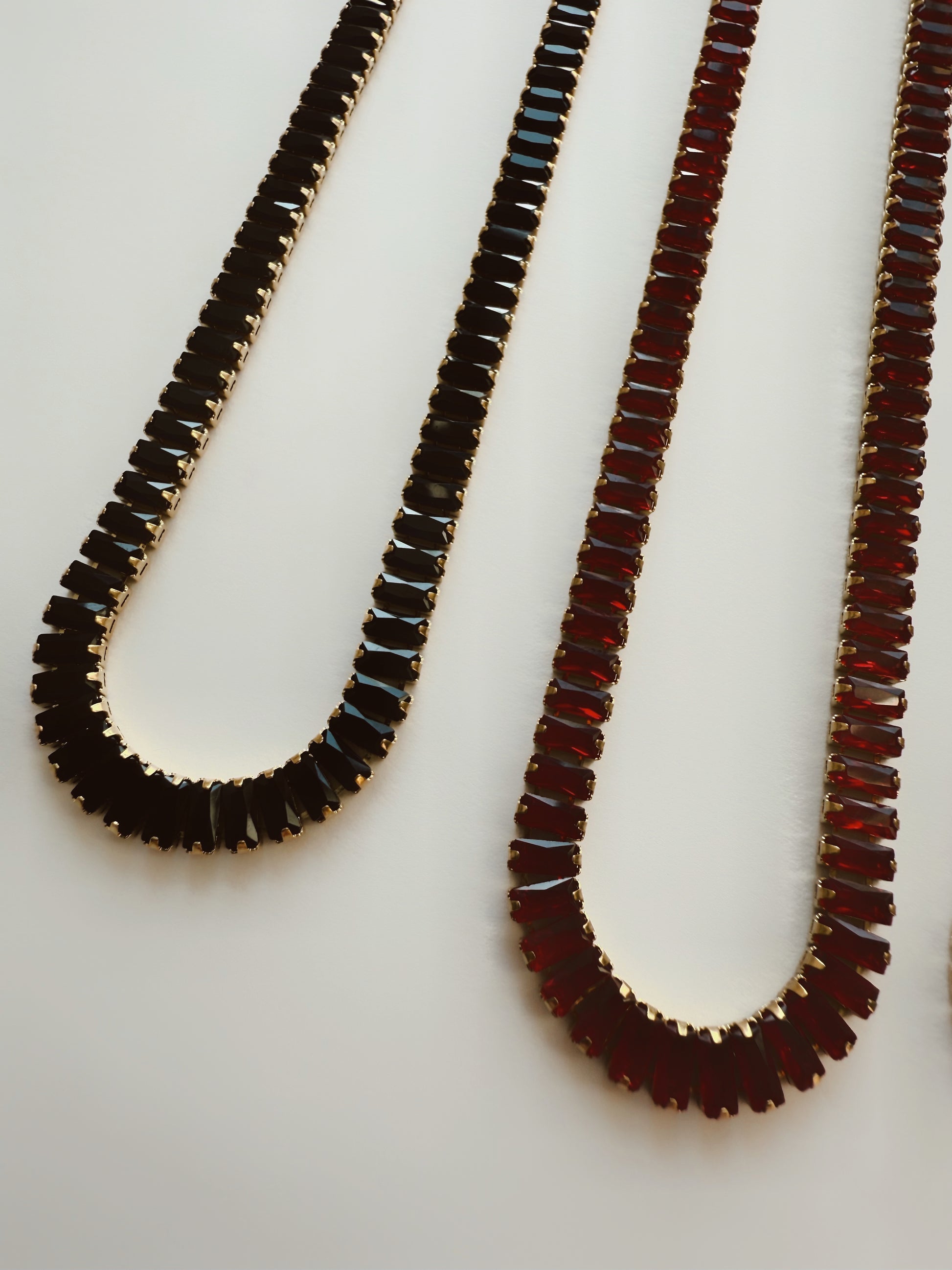 Classic with a little edge. The Audrey Tennis Necklace is your elevated everyday statement — sleek, sparkly, and designed to sit perfectly on the collarbone. Available in bold Black or iconic Red, this piece instantly upgrades any look from casual to polished.