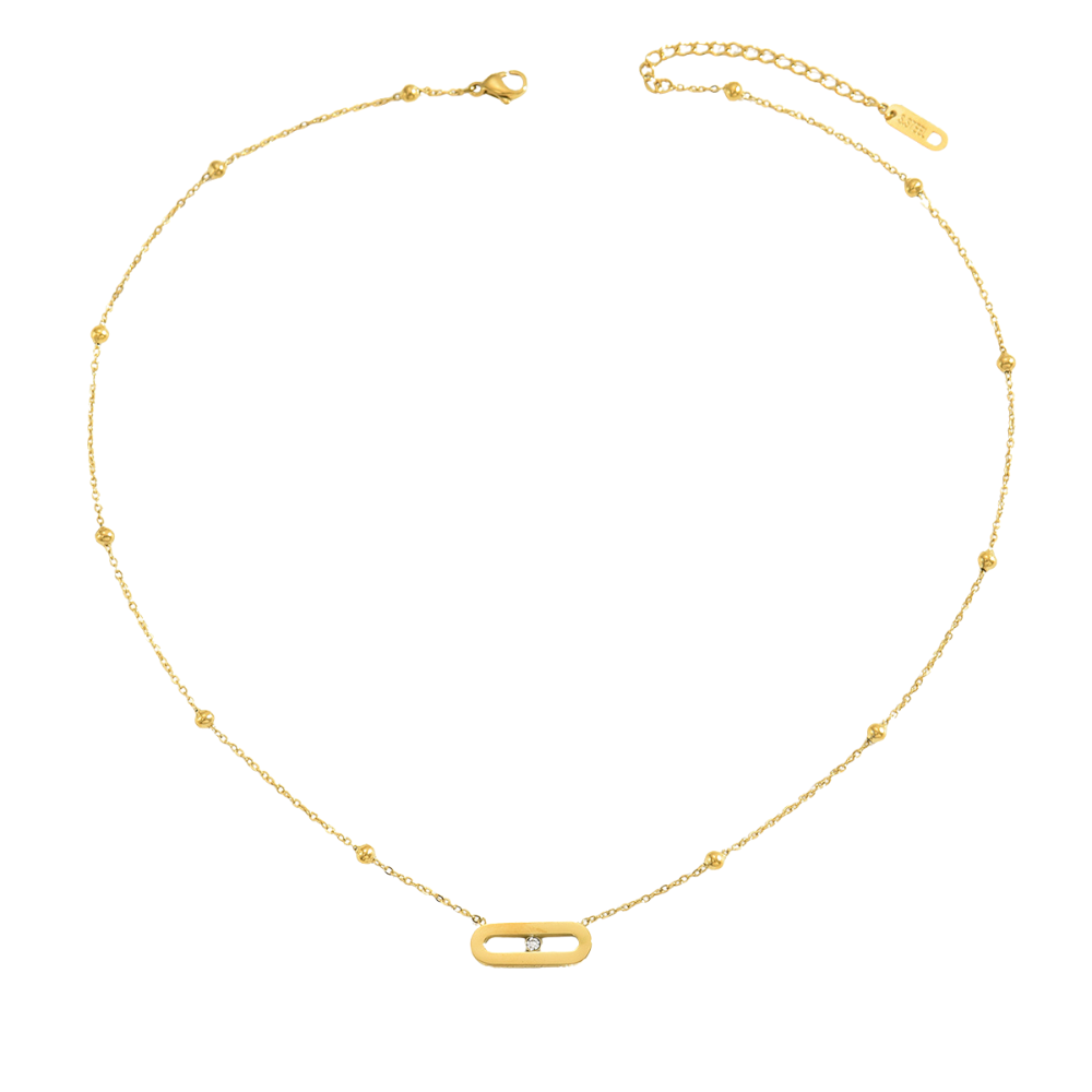 A little sparkle, a lot of glow. The Barely There Sparkle Necklace features a delicate satellite chain with mini gold ball accents and a sleek oval centerpiece holding a tiny crystal. She’s minimal, modern, and made to be layered or worn solo for that barely-there glam.
