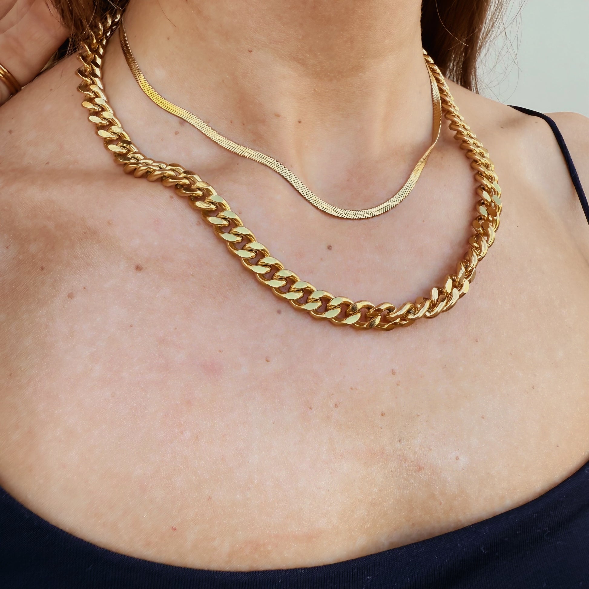 The Mood Exclusive Cuban Chain Necklace is the definition of boss energy. Designed in our signature rich gold tone, this chunky staple takes your stack to the next level. Exclusive to our shop, so you won’t see everyone else wearing it — just the It Girls.