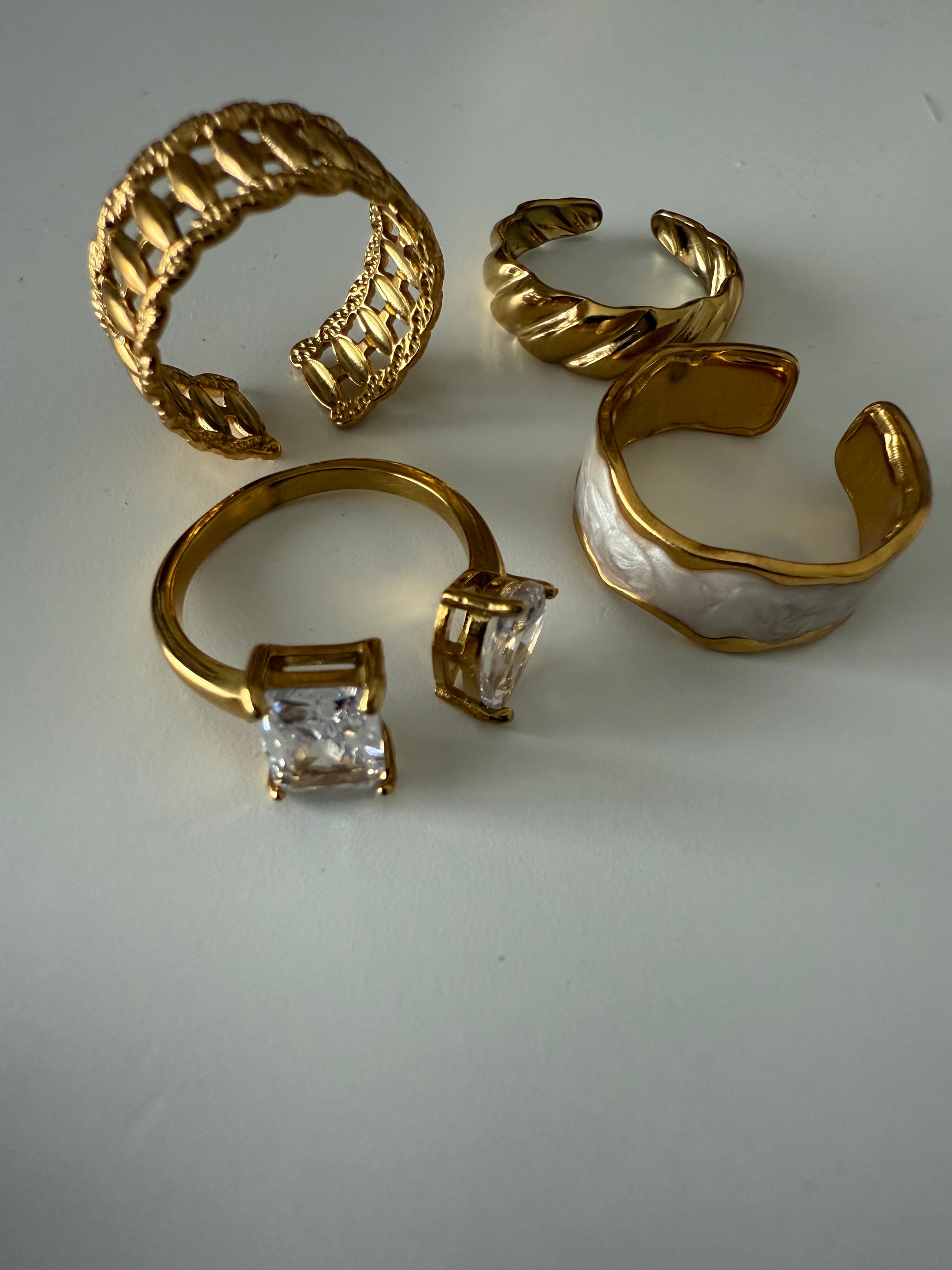 • Set of 4 open, adjustable stacking and statement rings that we love!!