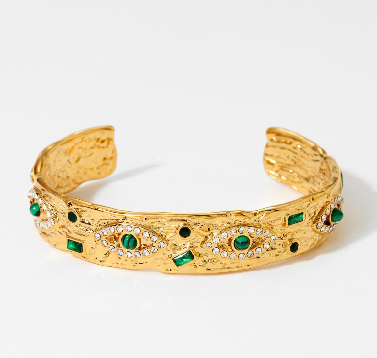 Stack this bangle with other gold bracelets for an eclectic boho glam bracelet stack, or wear it solo as your outfit’s showpiece. For maximum impact, pair it with a flowy festival dress or your edgiest concert attire. You’ll channel those rich-girl boho vibes effortlessly.