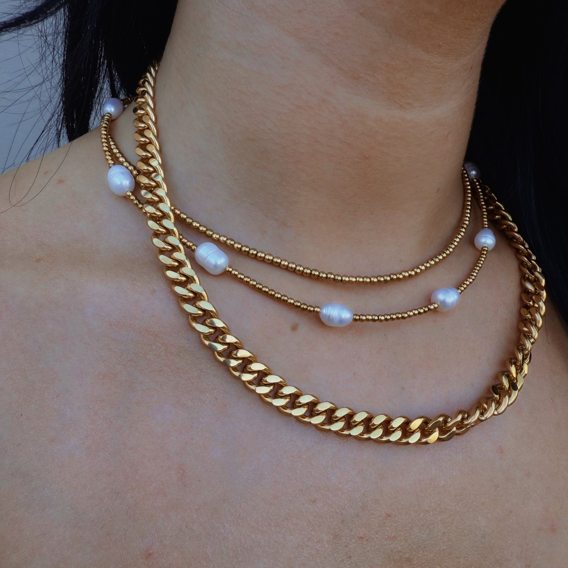 The golden staple you’ll never take off. The Bare Gold Necklace features smooth beaded detail that catches the light just right, giving you that effortless glow. Waterproof, hypoallergenic, and built to layer—this one’s made for daily wear, no matter the vibe.