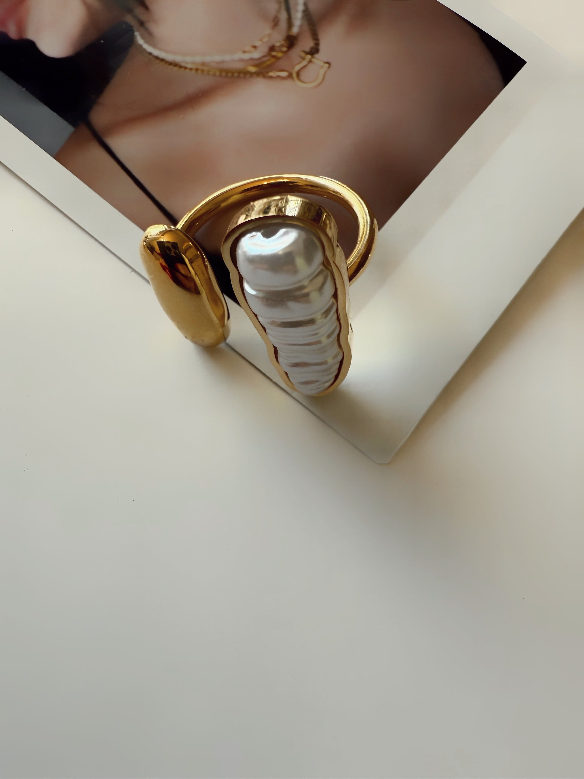 Elevate your everyday look with the Laguna Hills Pearl Ring. Featuring a sleek gold band and organic pearl accents, this adjustable beauty brings effortless seaside energy to any outfit. Lightweight and luxe, it’s perfect for stacking with your favorite dainty rings or letting it shine solo. Designed for beach days, summer nights, and everything in between.