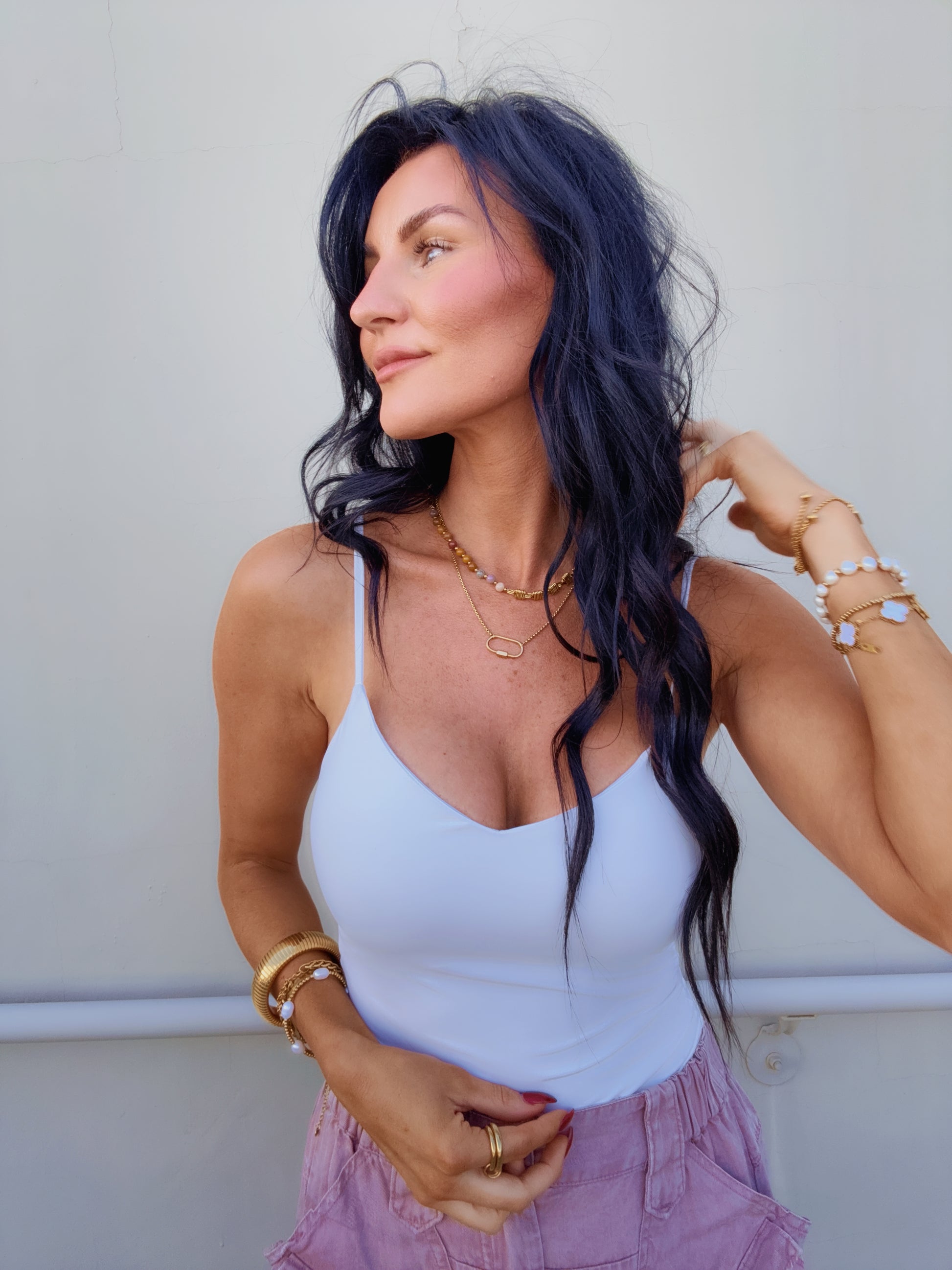 Wear the Locked In Necklace solo for an effortless statement, or layer it with pearls and chunky chains (like the Icon Chain or Santorini Vacation Pearls) for that It Girl stack.