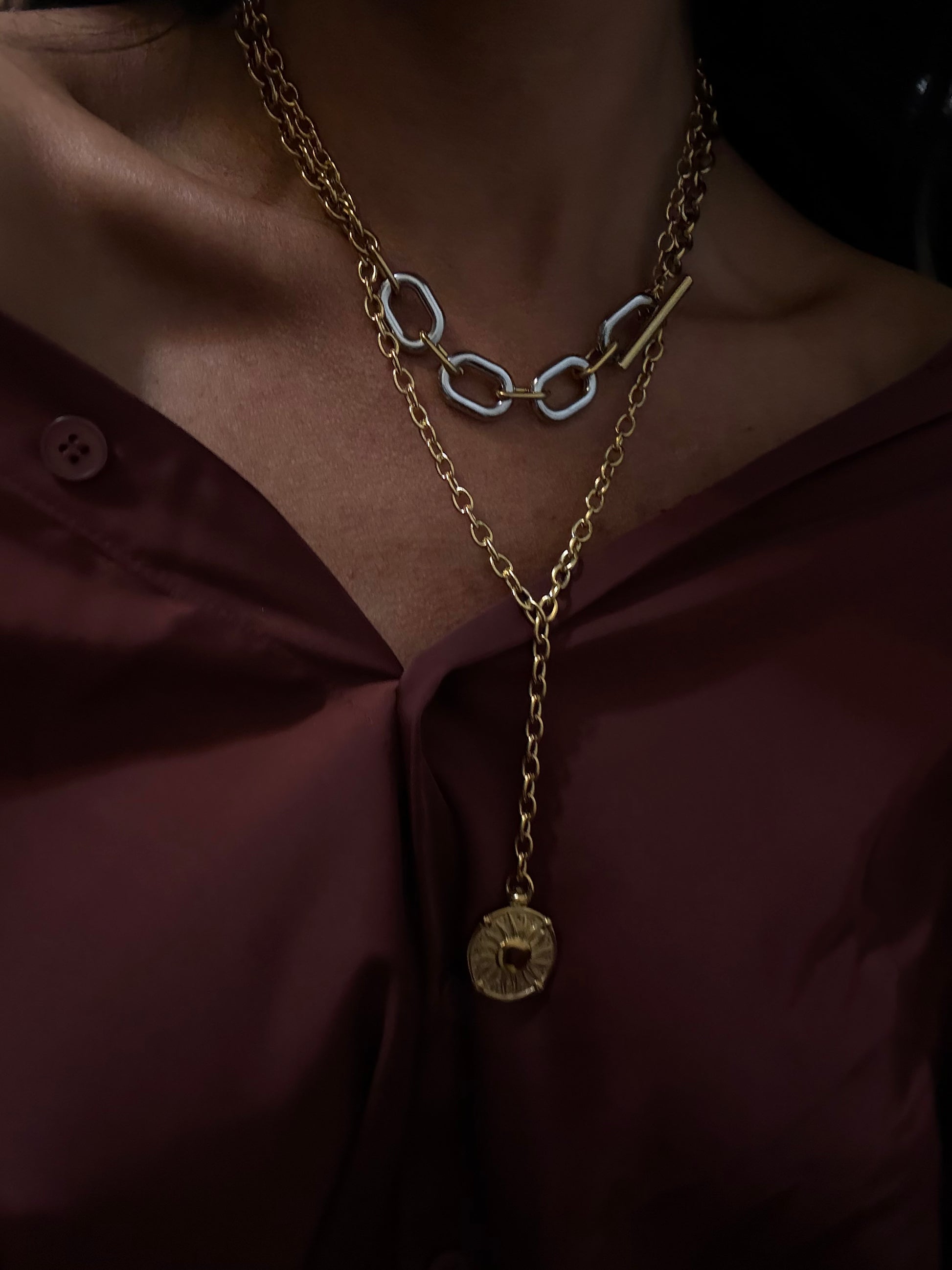 The Mara Mixed Chain is a bold two-tone statement that captures the essence of modern luxury. With gold and silver links connected by a sleek toggle clasp, it’s the ultimate blend of structure and style — effortlessly cool and endlessly versatile.
