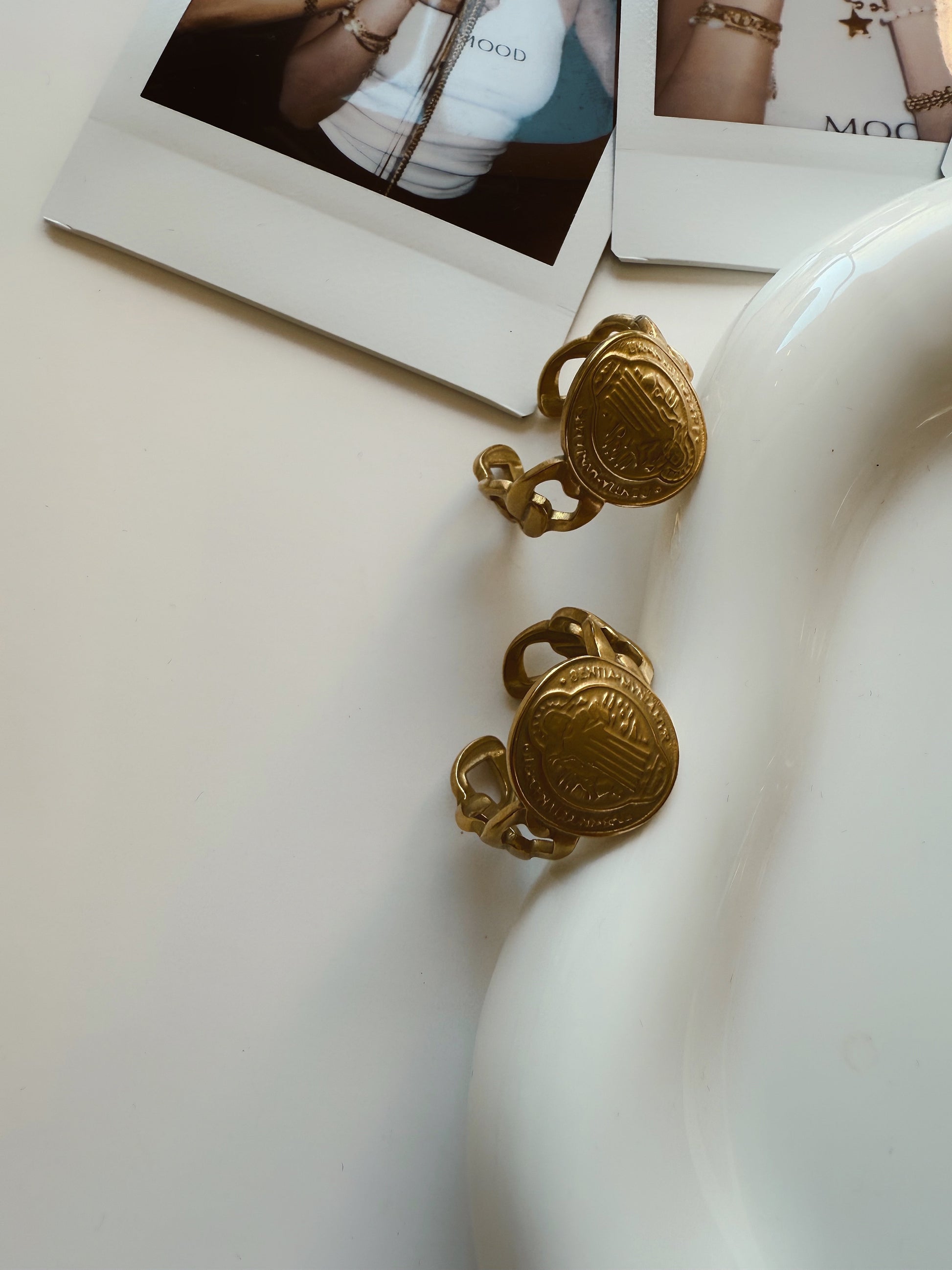 Vintage meets modern in the Mary Open Ring, featuring a detailed coin medallion design on an adjustable open band. It’s the perfect mix of bold and refined — a statement piece that still feels effortlessly wearable.