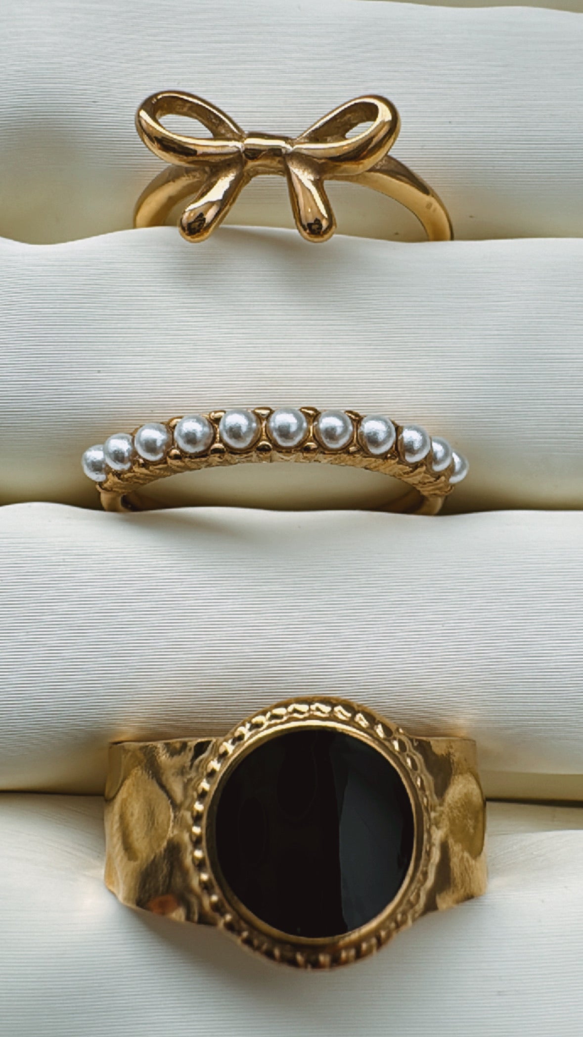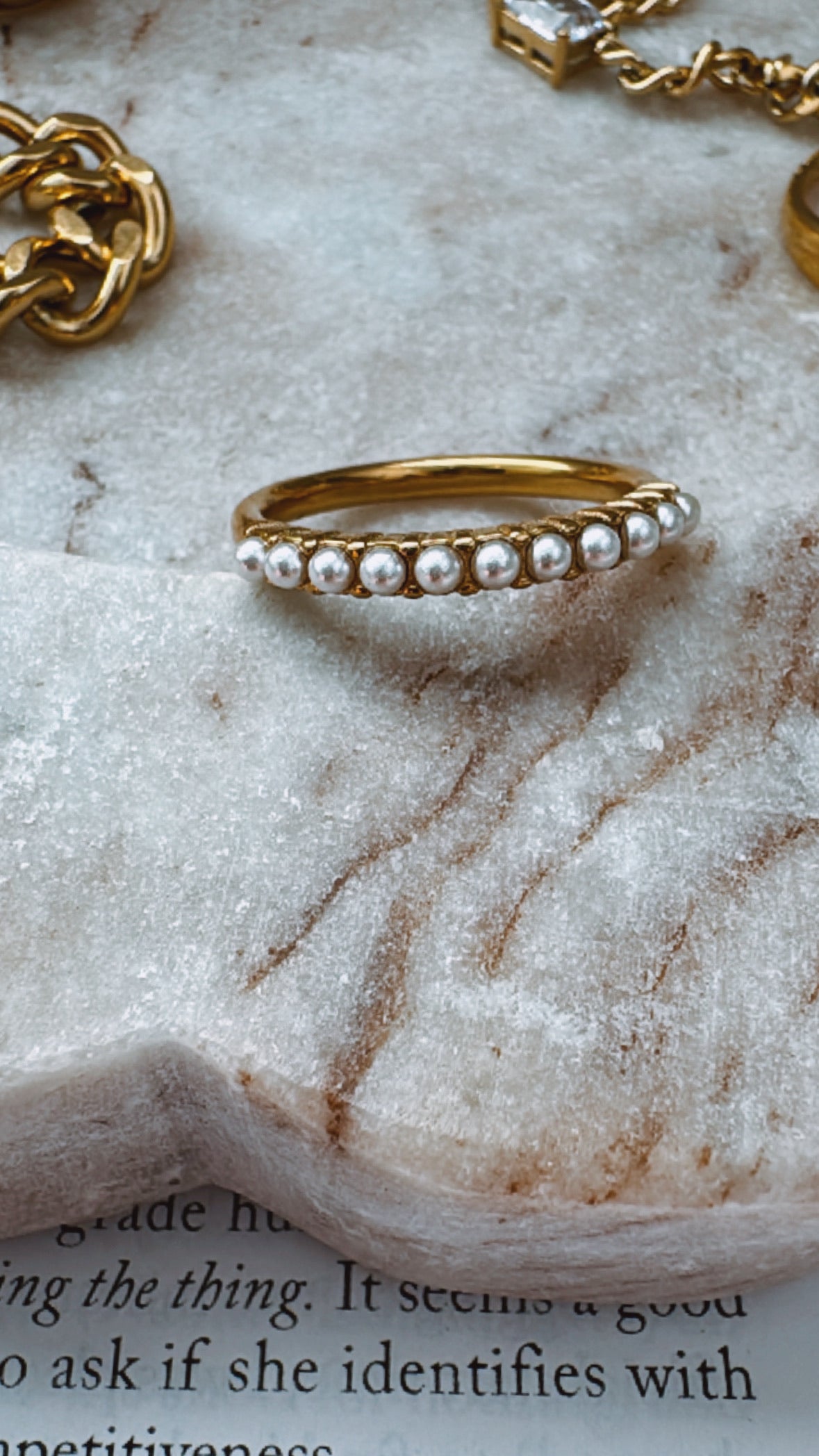 Accessorize your stack with a delicate touch of pearls. This thin, dainty ring was made for layering—wear it solo for a minimalist look or stack it with a chunky cigar band or slim gold ring for a chic, curated vibe. Small but statement-making, it’s the perfect piece to elevate your everyday jewelry lineup.