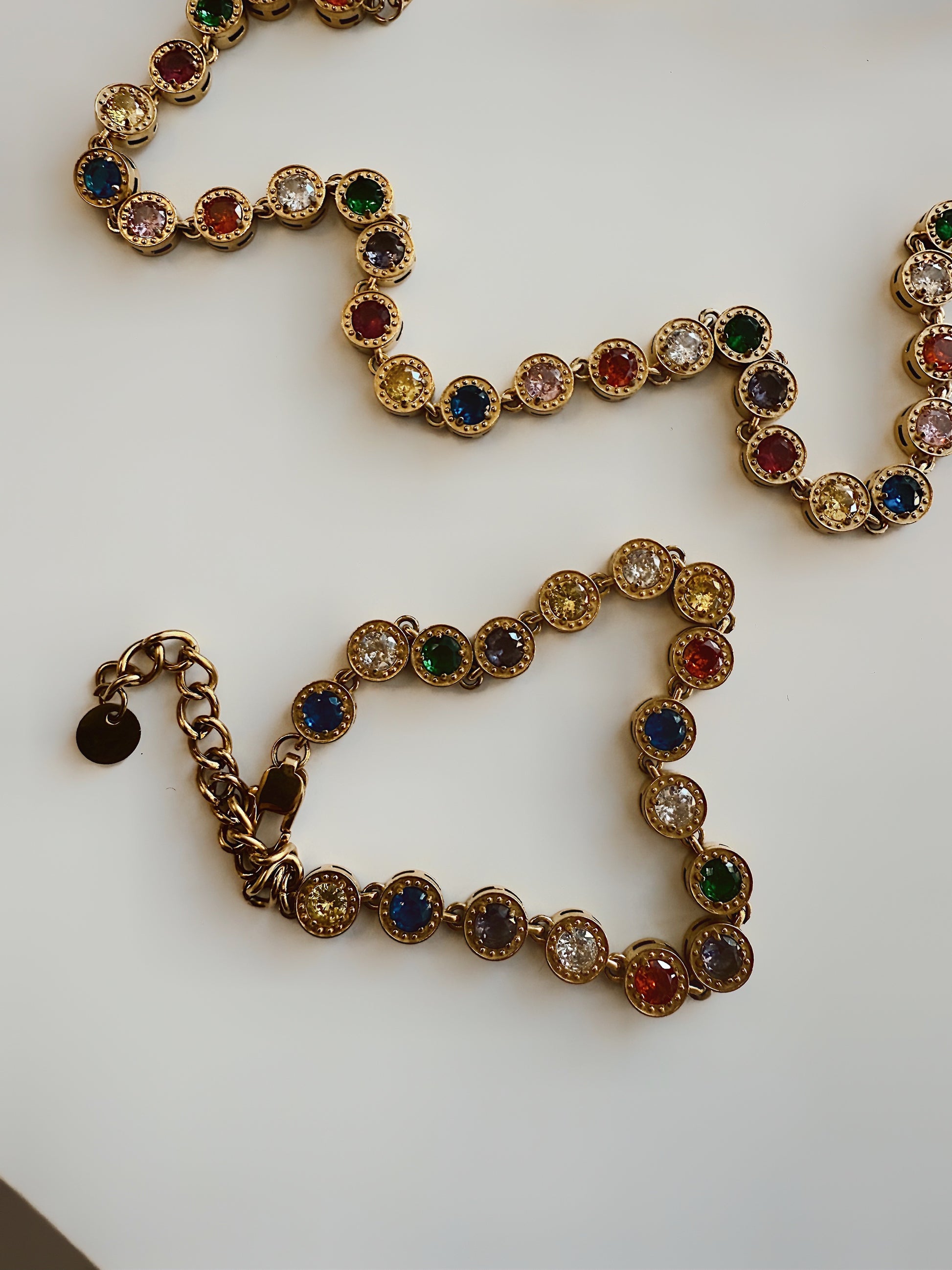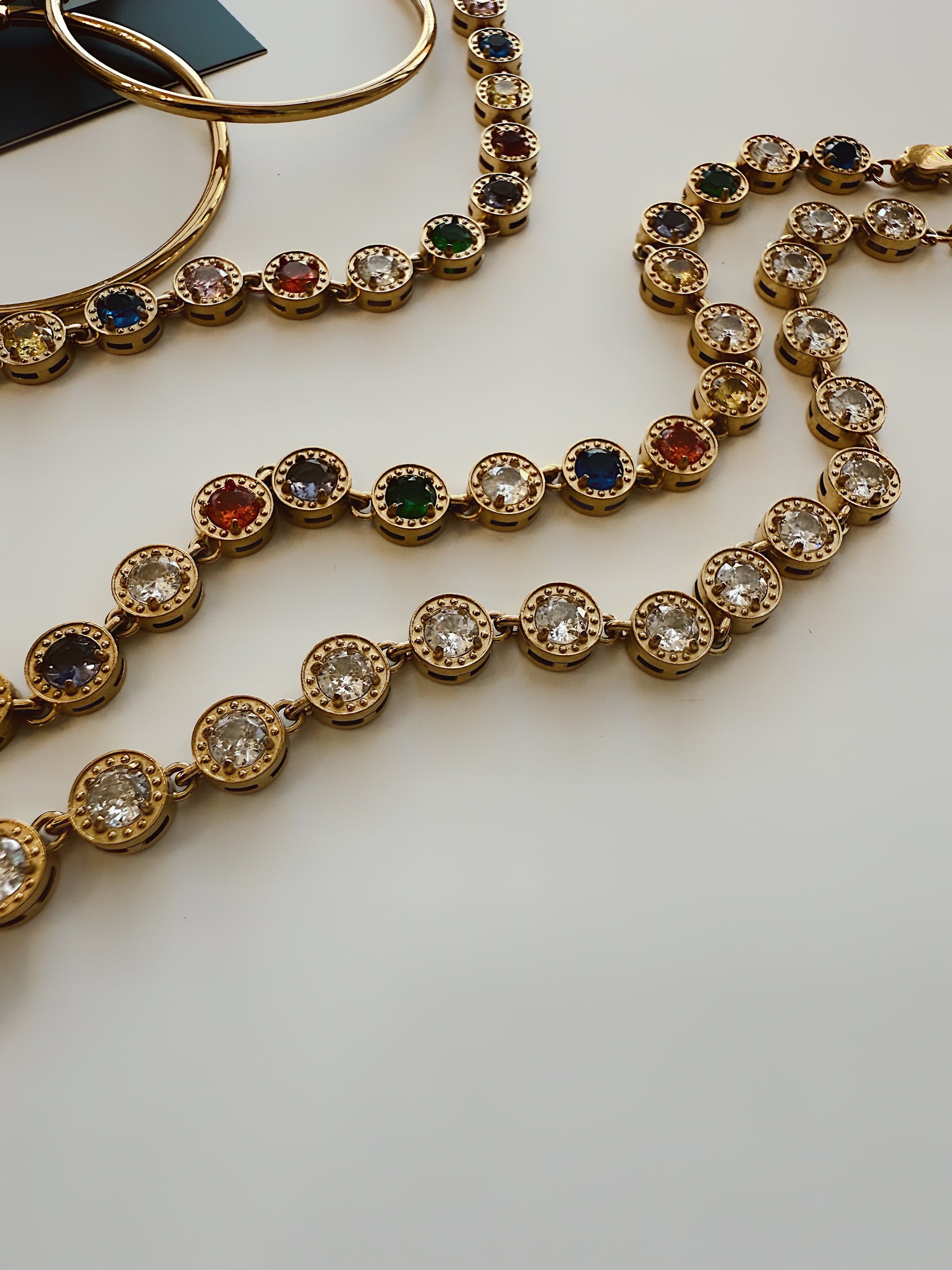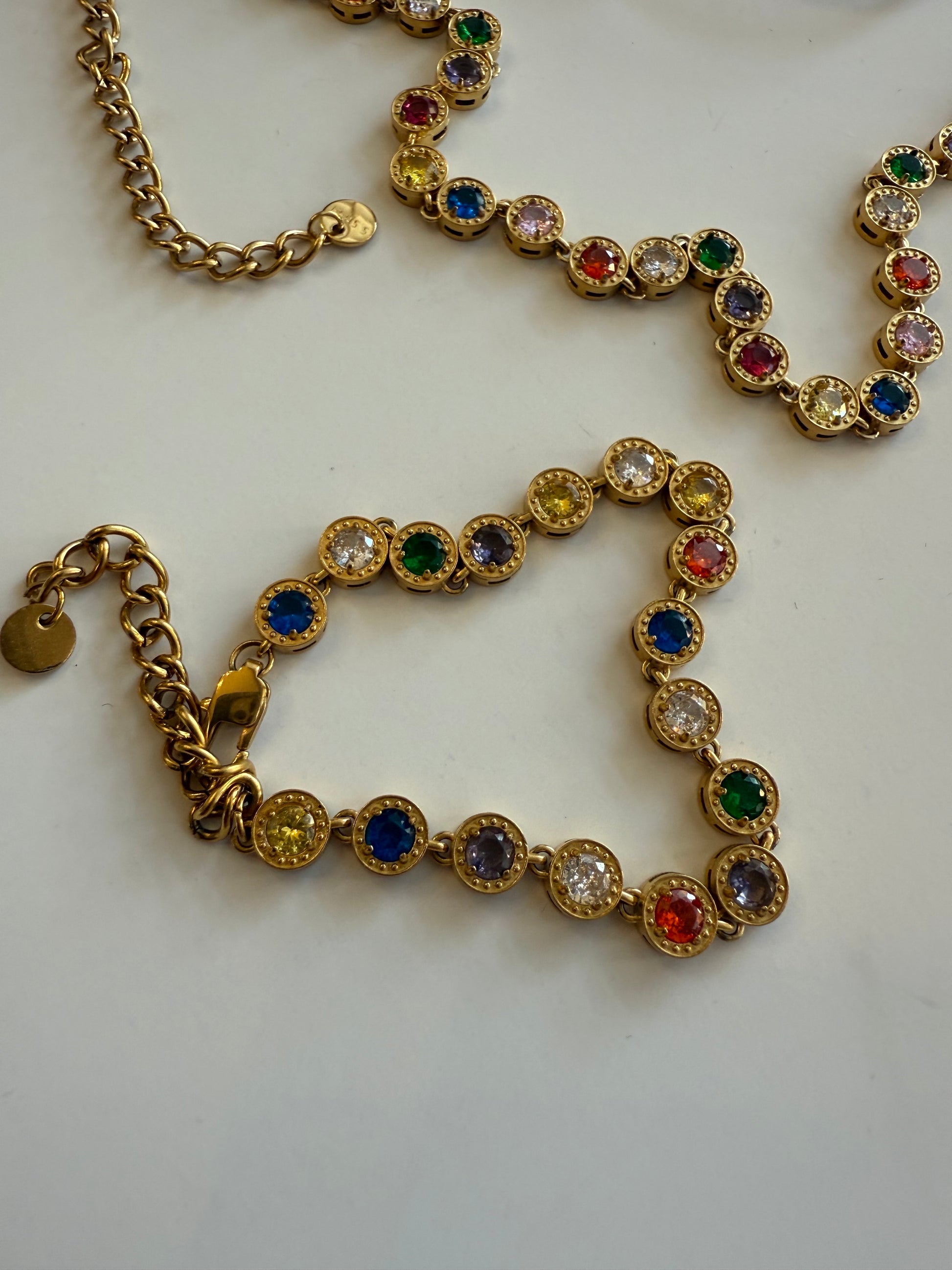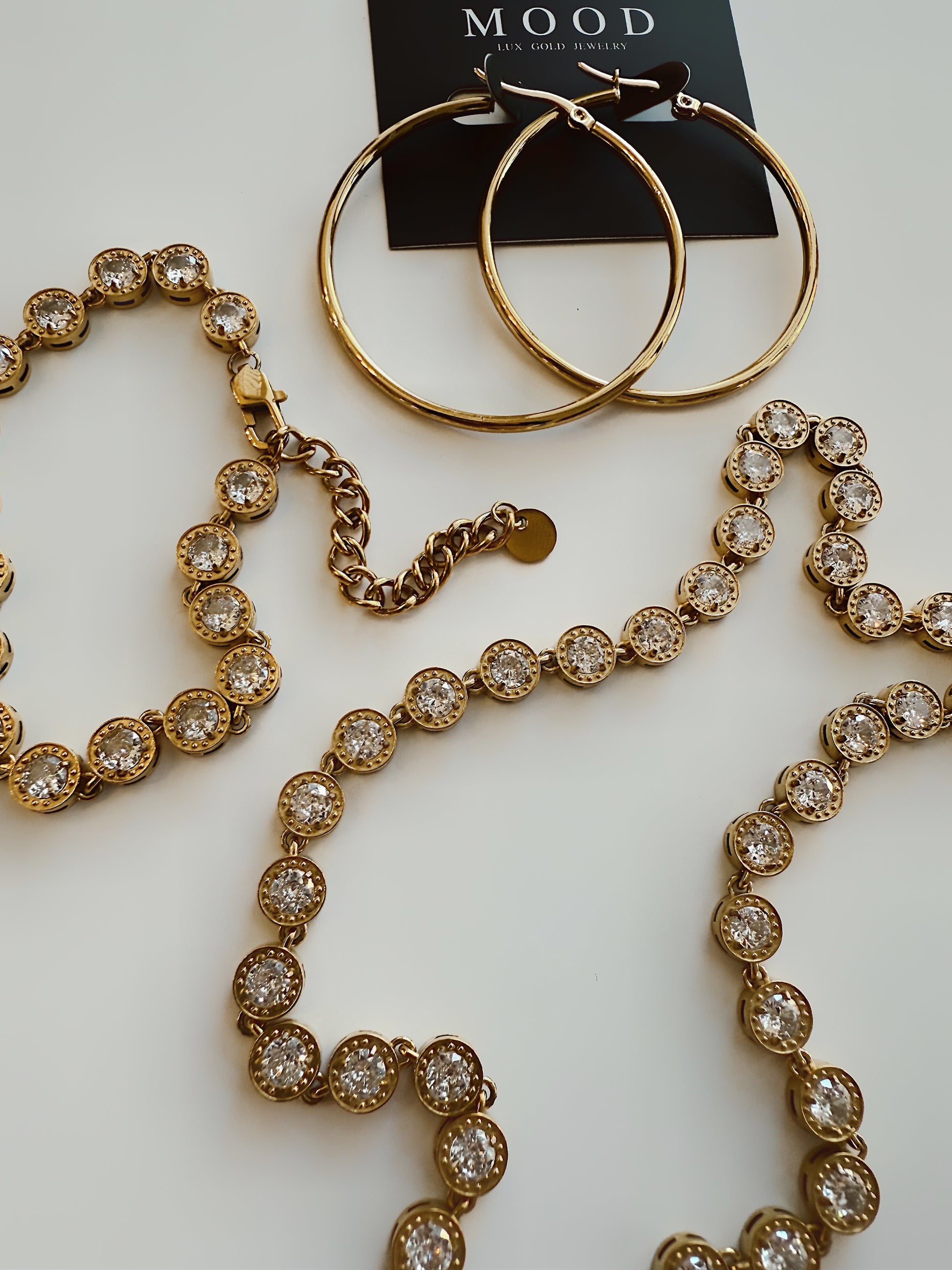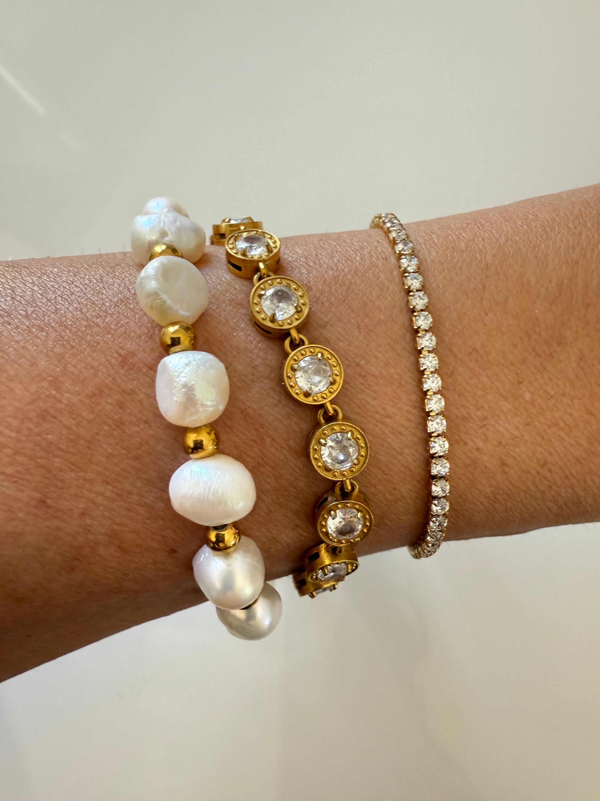 The Katie Diamonda Tennis Bracelet delivers timeless elegance with a luminous edge. Featuring bezel-set sparkling crystals in rich gold stainless steel, this piece is both waterproof and hypoallergenic — perfect for everyday wear or special occasions. Its secure clasp and polished finish make it a staple for any jewelry collection.