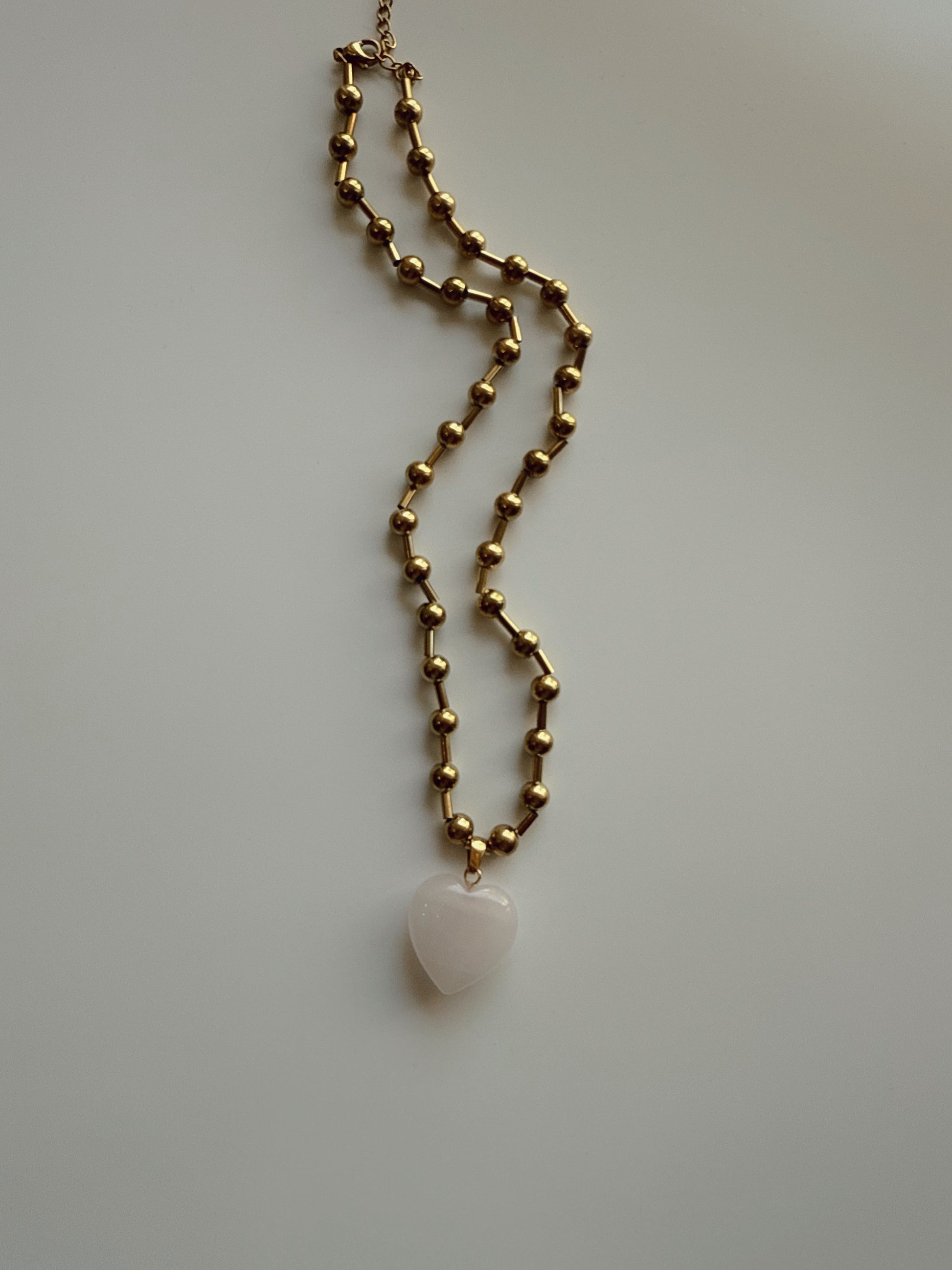Sweet, glossy, and a little flirty. The Rosie Heart Necklace features a soft pink heart charm paired with a bold gold ball chain for the perfect mix of feminine and statement. She’s giving romantic energy with a modern edge — the kind of piece that instantly pulls a look together.