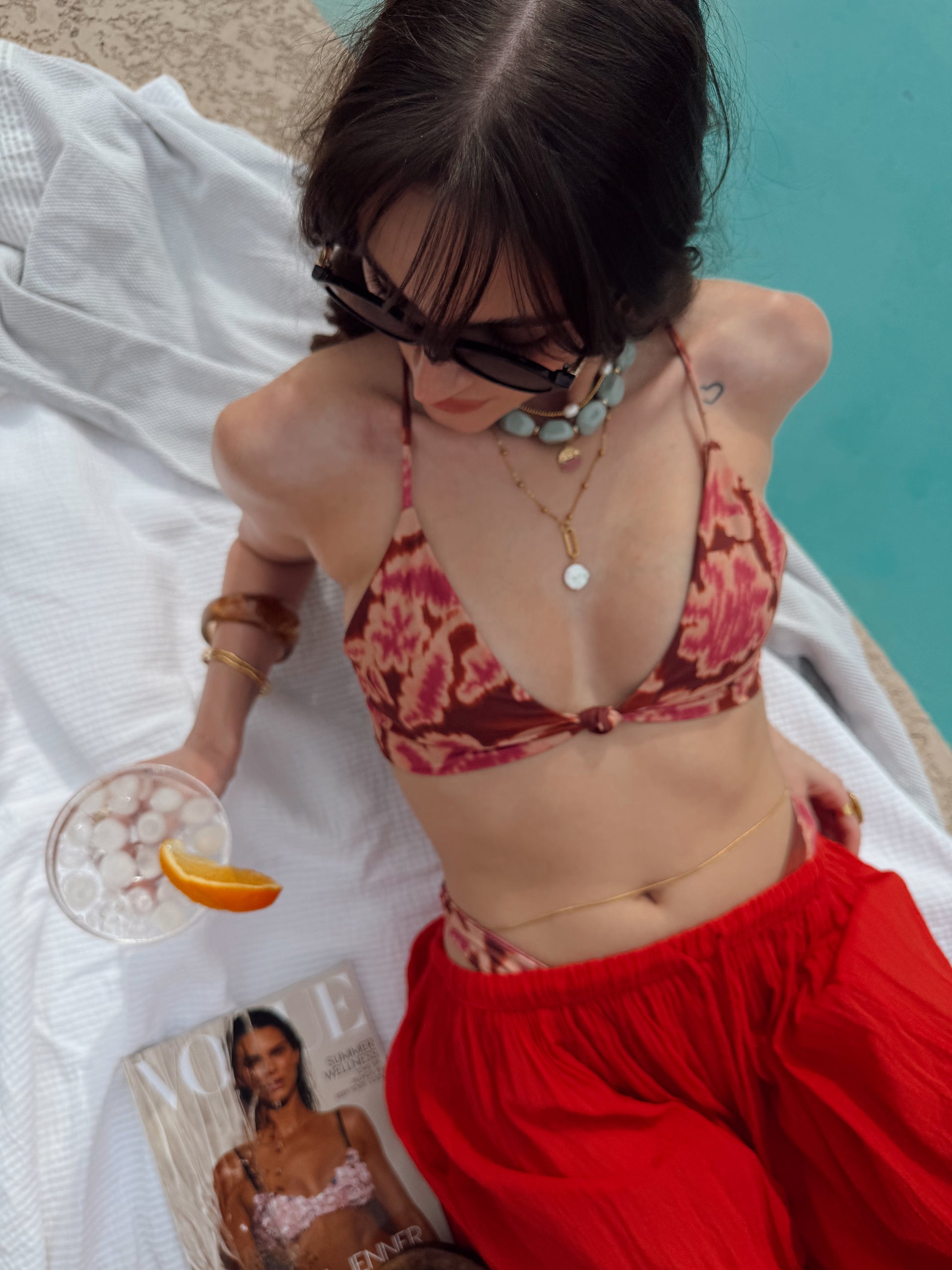 Layer Solene with a simple gold snake chain or a short choker for that rich-on-vacation look — perfect with linen, bikinis, or an open button-down at golden hour.