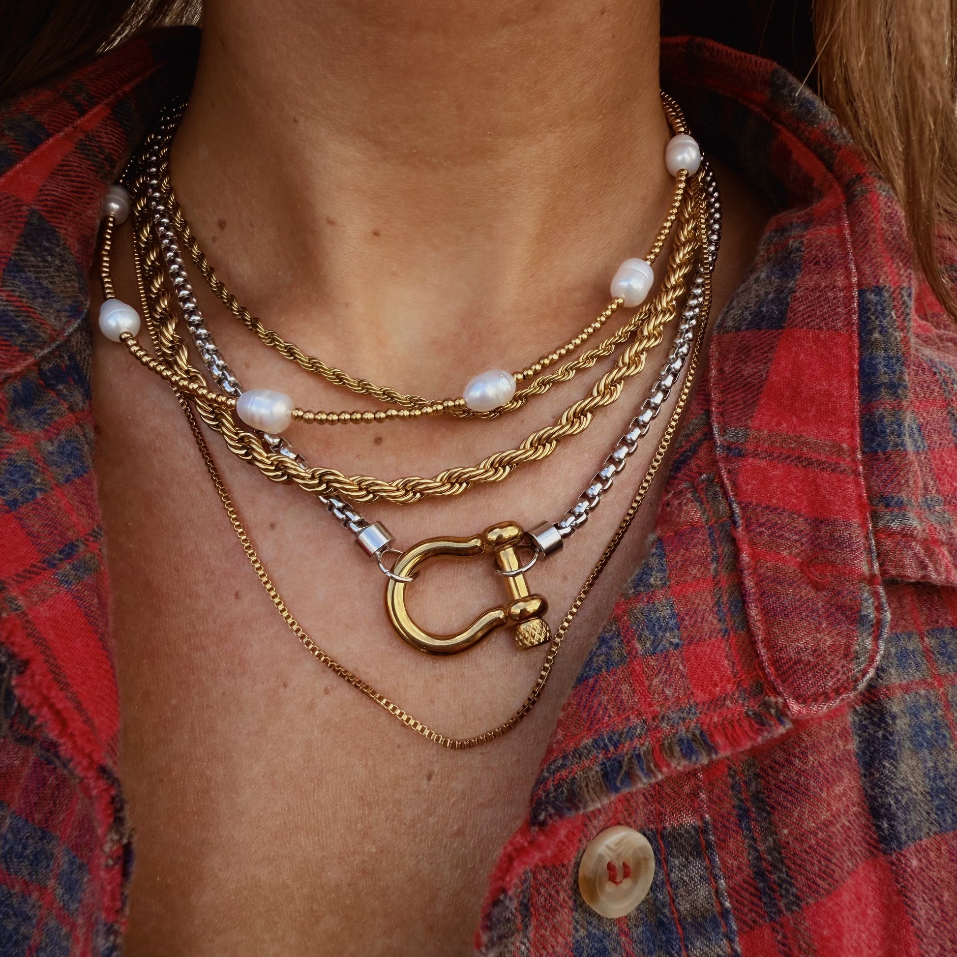 Delicate, golden, and made to wander. The Sunkissed Drifter Pearl Necklace features a dainty 18k gold-plated beaded chain dotted with lustrous freshwater pearls — giving that effortless sunlit glow. It’s lightweight, timeless, and perfect for layering or solo wear.