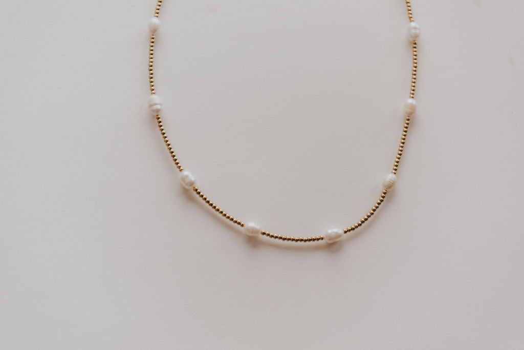 A Personal Favorite Stacker. Delicate, golden, and built for every moment. The Sunkissed Drifter Pearl Necklace pairs a dainty beaded gold chain with glowing freshwater pearls — giving you that sun-lit, effortless Mood energy. Lightweight, timeless, and gorgeous solo or stacked.