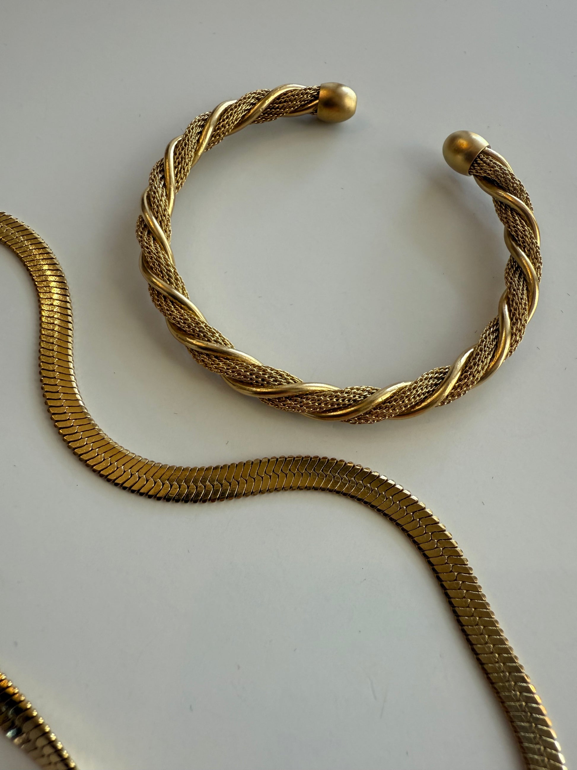 Sleek. Sculptural. Stackable. The Threaded Gold Arm Cuff is a minimalist must-have with a twisted cable design that gives designer vibes without the designer price tag. Slide it on for a bold look that’s still effortlessly wearable.