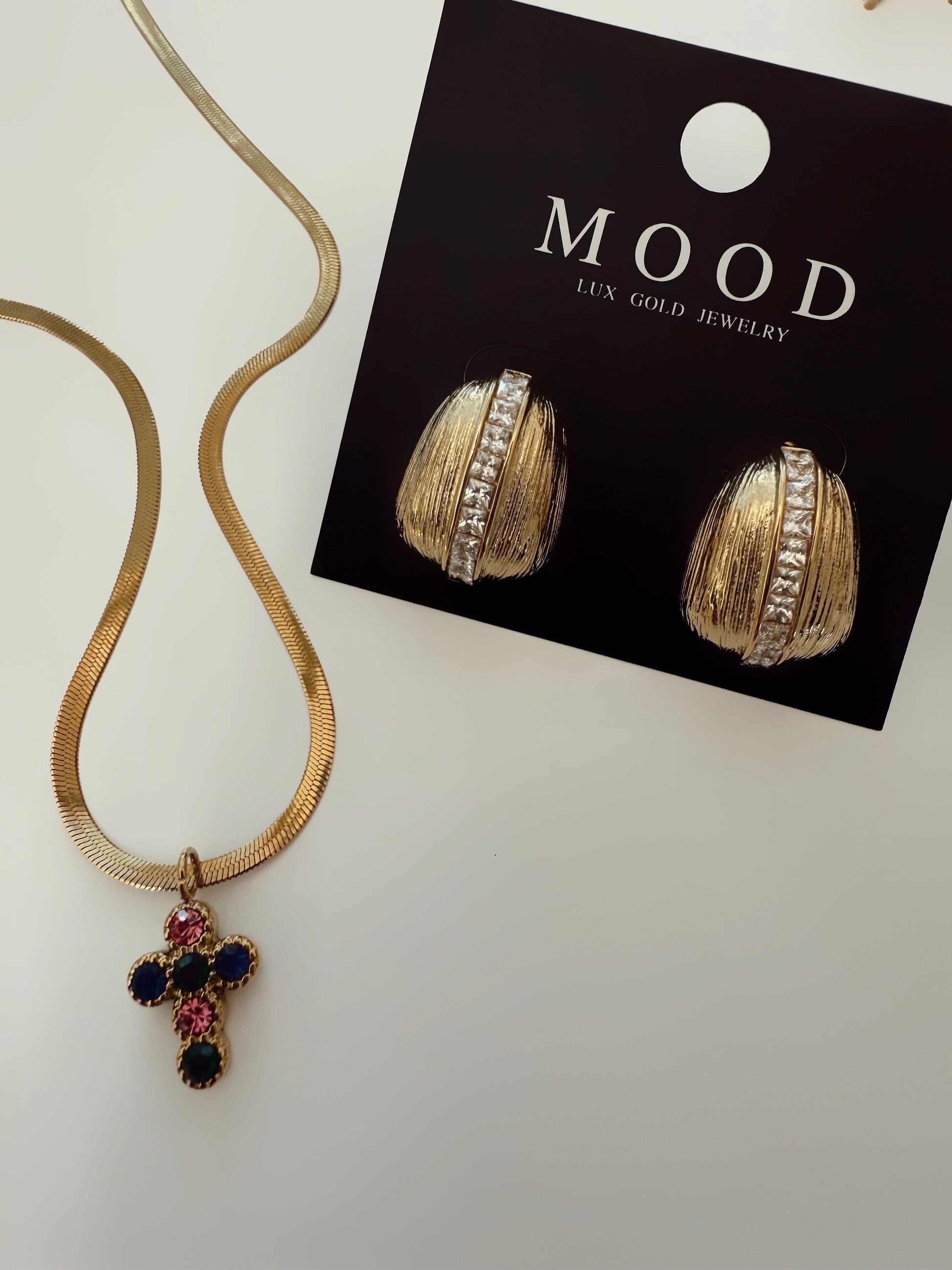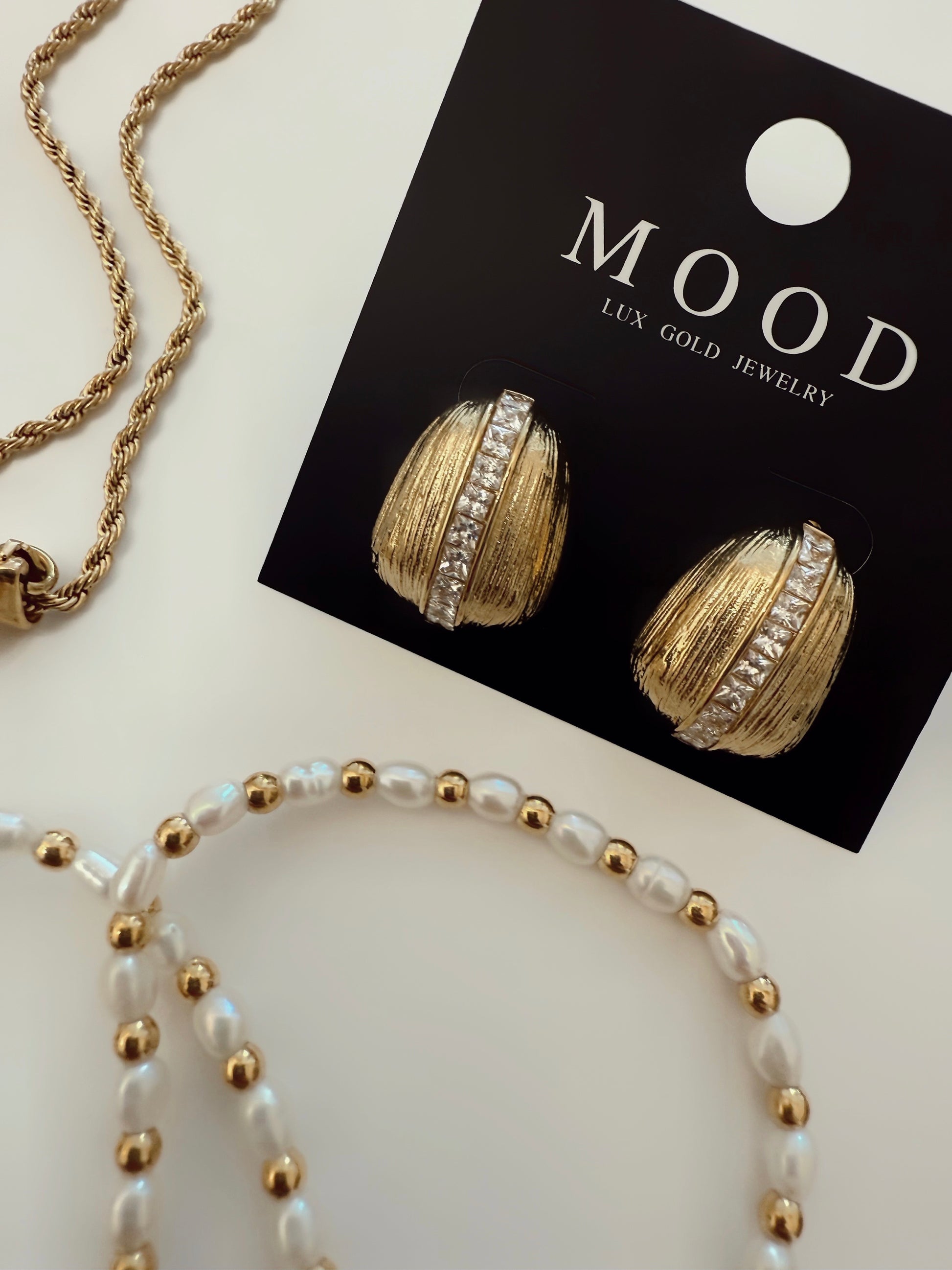The Vera Studs bring effortless sophistication to any look. Designed with a brushed-gold dome and a line of radiant crystals, these statement studs are the definition of quiet luxury — bold enough to stand alone, yet refined enough for everyday wear.