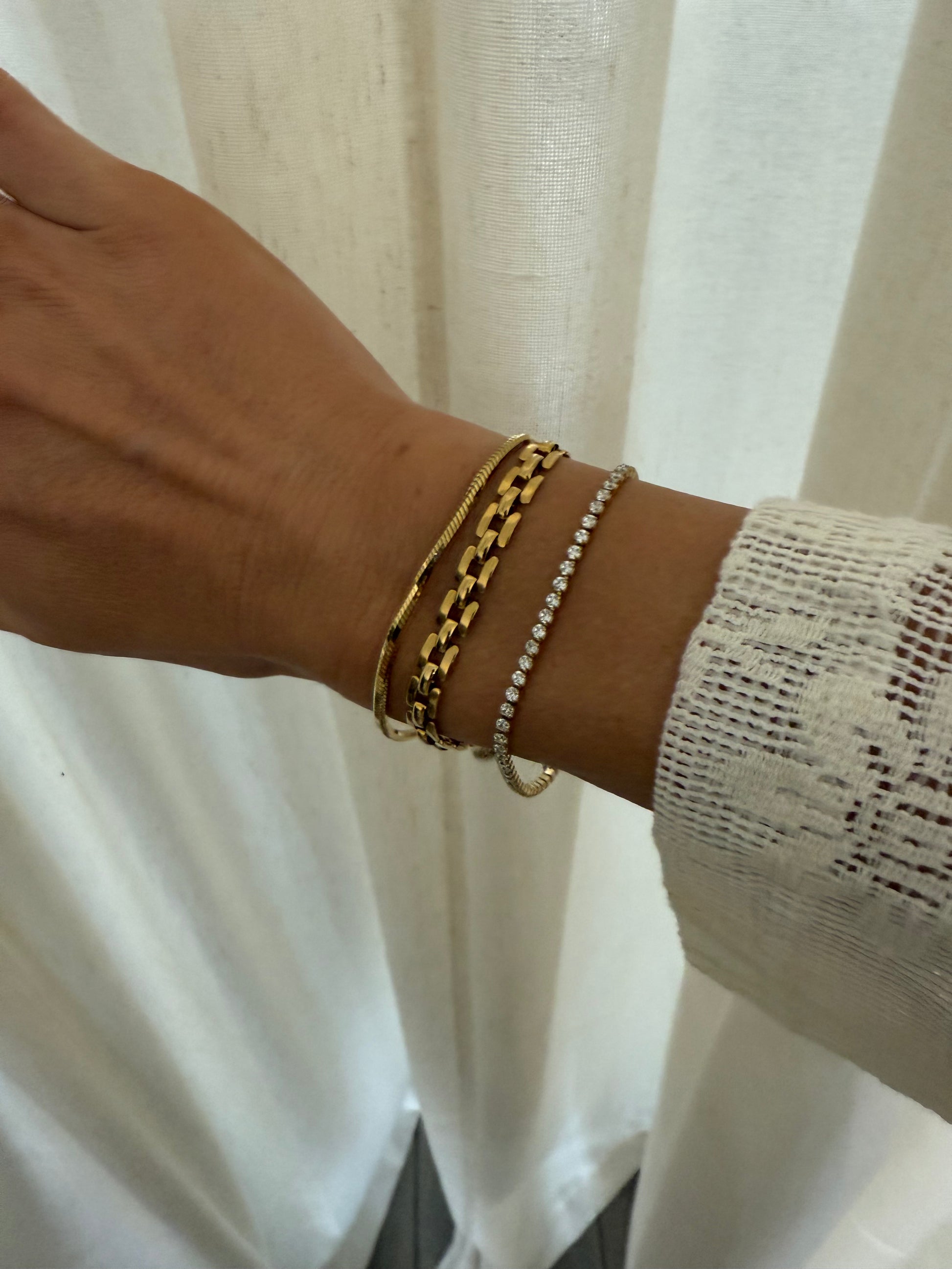 Meet the Whitney Bracelet — your new elevated everyday chain. With its sleek flat-link design and lightweight feel, Whitney brings that clean, modern shine Mood girls love. She’s minimal but still makes a statement, perfect for stacking or wearing solo when you want effortless polish. Waterproof, tarnish-free, and made to last through every season.